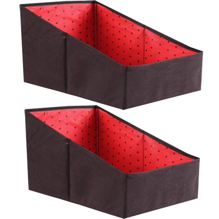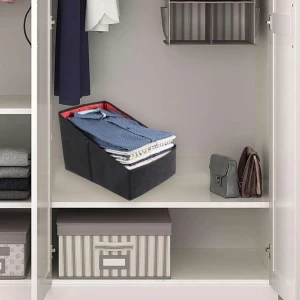 Organize your wardrobe with style using this set of two foldable shirt and clothing organizer stackers.