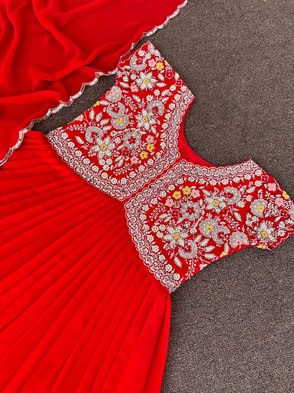 Fancy Party Wear Faux Georgette Work Lehenga Saree With Blouse and Belt