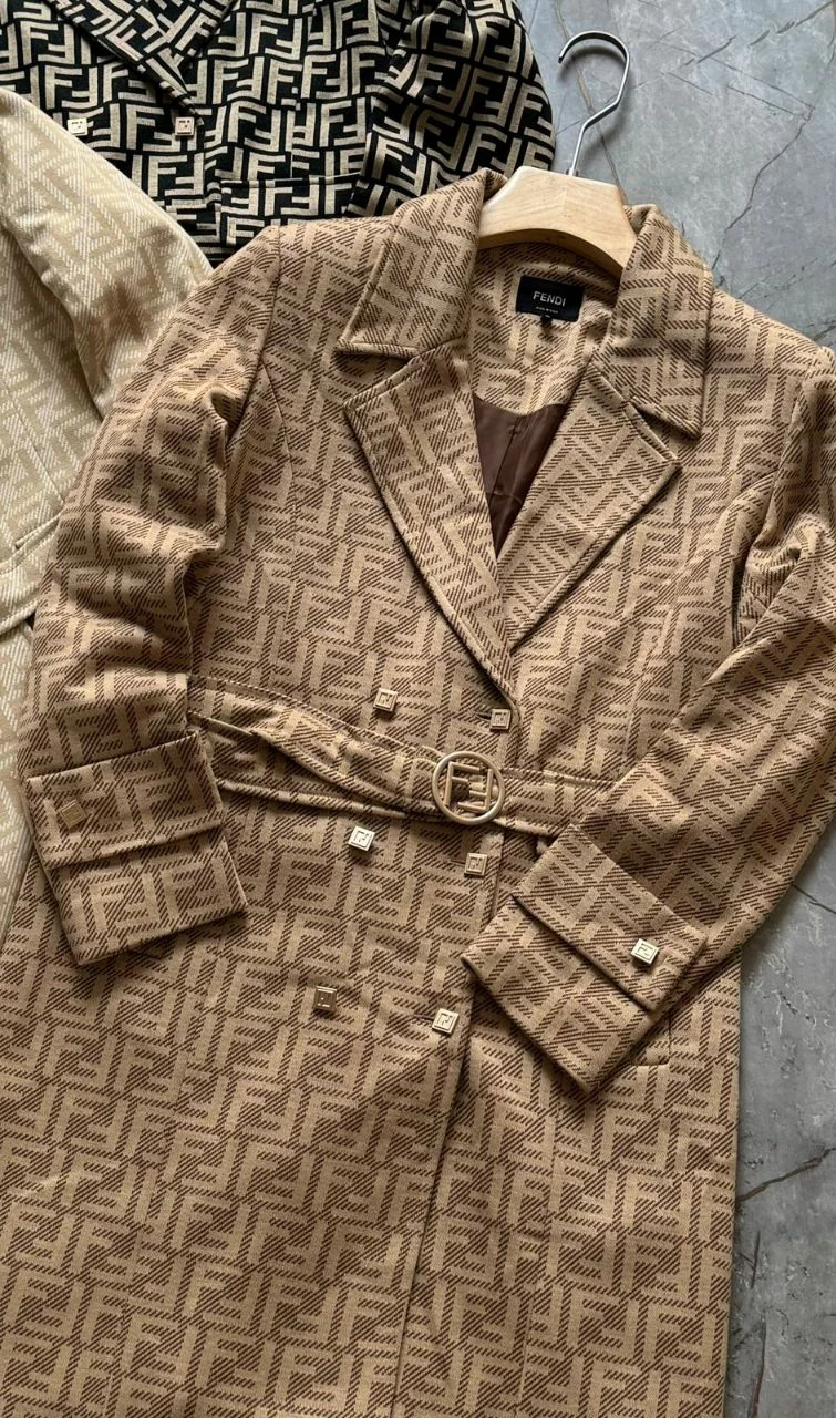 Make a bold fashion statement with the Fendi FF Monogram Luxury Long Trench Coat, designed exclusively for women who embrace elegance and sophistication. Adorned with the iconic FF monogram pattern, this luxurious coat showcases Fendi’s timeless craftsmanship and attention to detail. The long trench coat silhouette, complete with a belted waist, notched lapels, and premium materials, offers a perfect blend of comfort and style. Ideal for both formal and casual occasions, this coat is a must-have for those looking to elevate their wardrobe with a piece that exudes confidence and refinement.