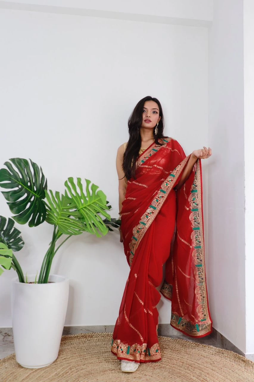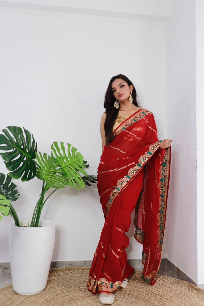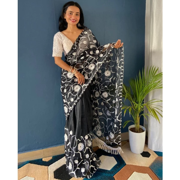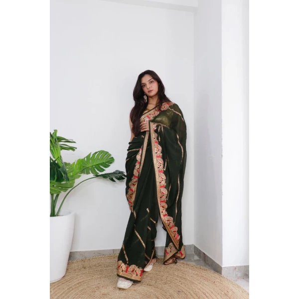 Georgette Silk with Viscose Threaded work Dark Saree