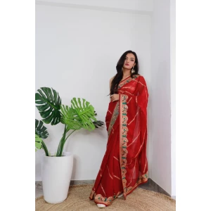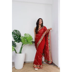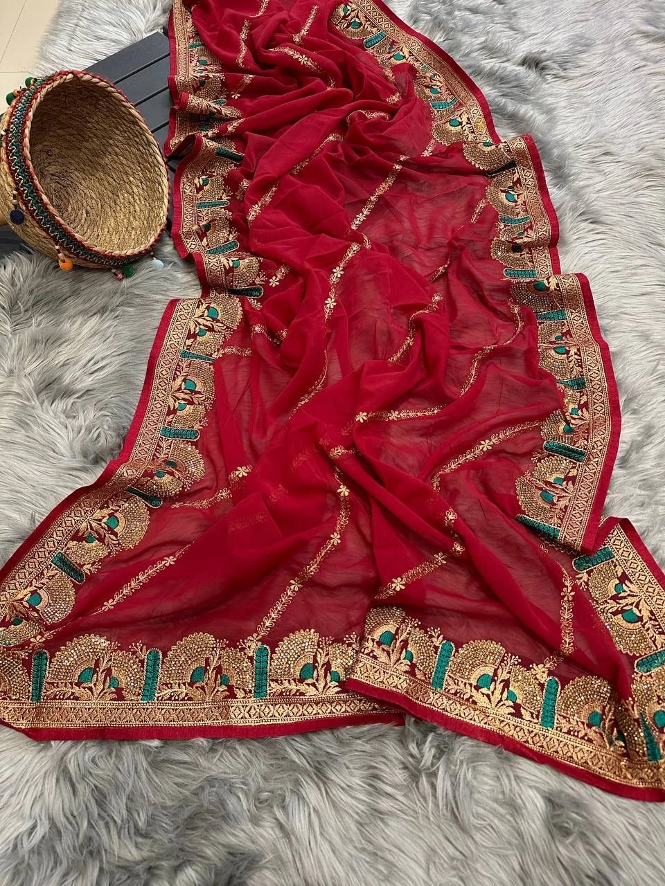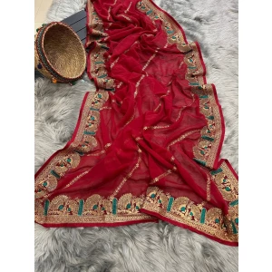 Superb Soft Refined Georgette Silk Saree in BLOOMING dark colors with viscos thread Work n jarkhan work also attached same work mono Banglori Silk work Blouse