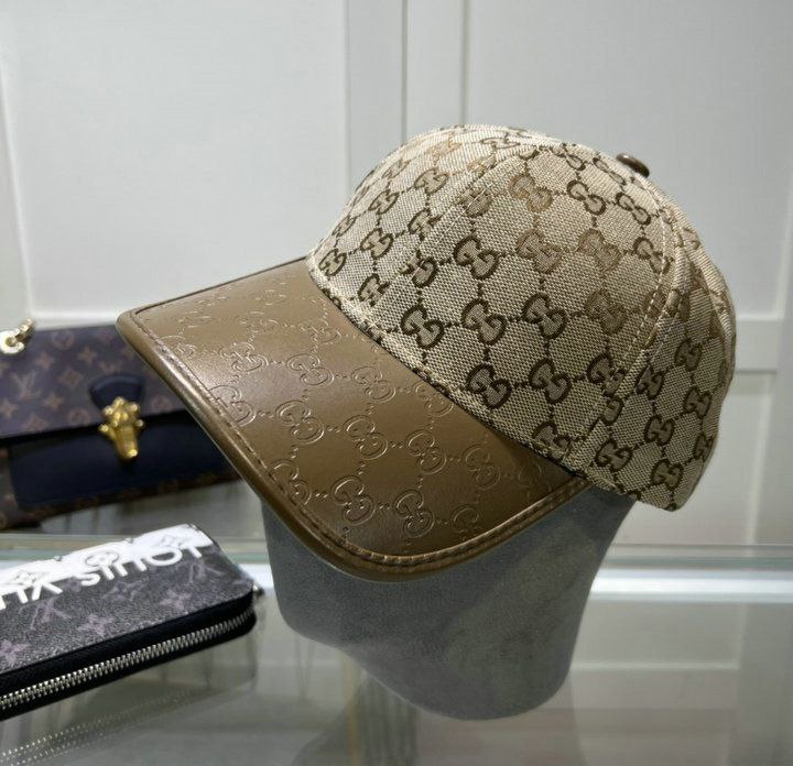 Gucci GG Small Monogram Canvas & Leather Unisex Beige Cap