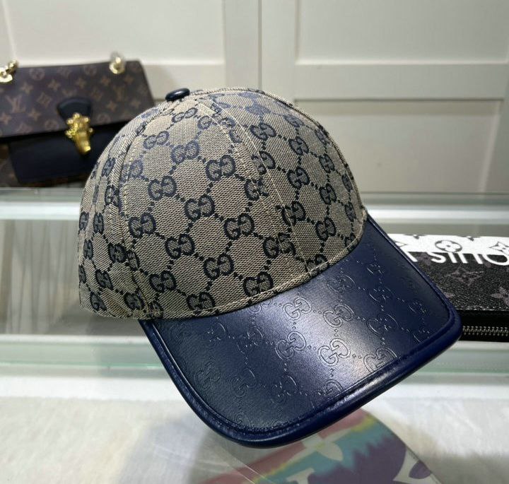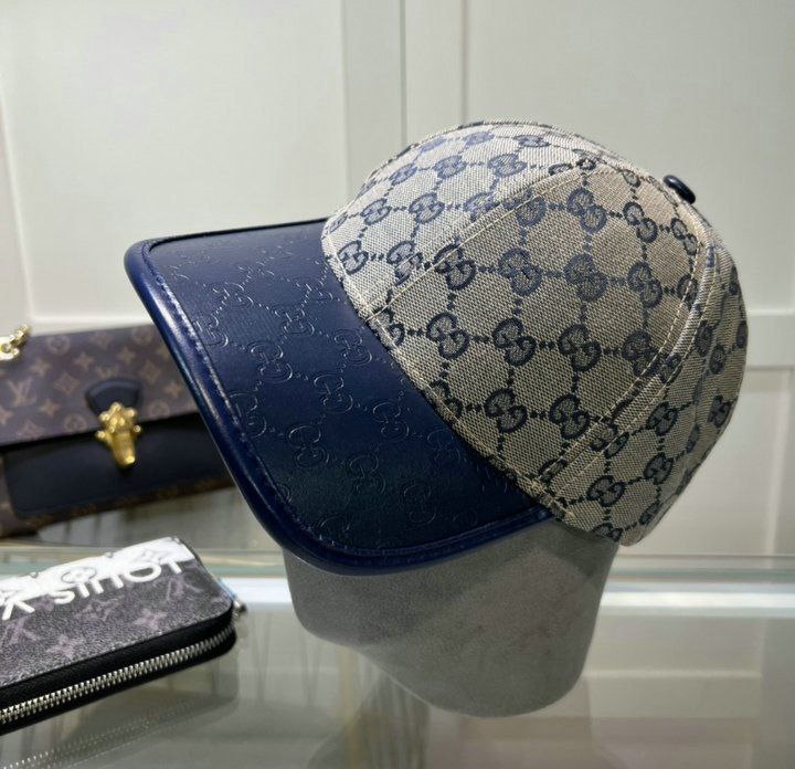 Gucci GG Small Monogram Canvas & Leather Unisex Blue Cap