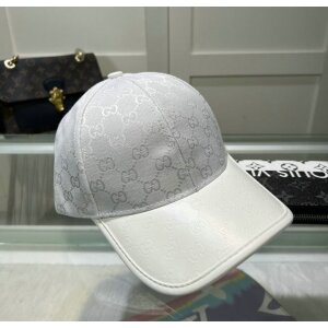 Gucci GG Small Monogram Canvas & Leather Unisex White Cap