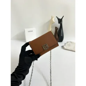 Women’s Loewe Anagram Brown Wallet On A Chain
