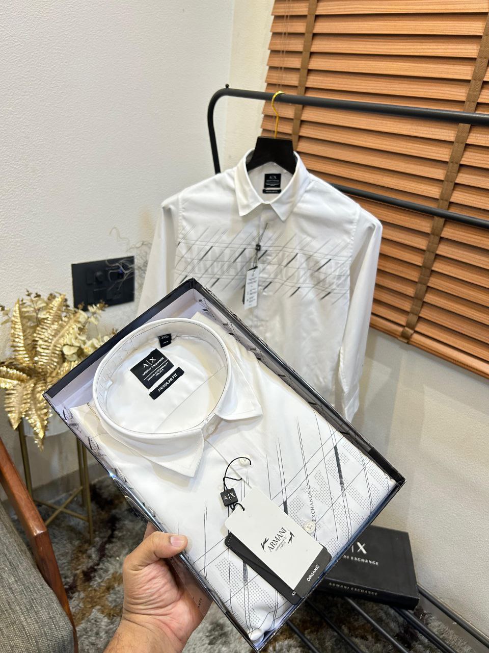- Luxury Designer Wear – Elevate your style with this premium Armani Exchange partywear shirt.
