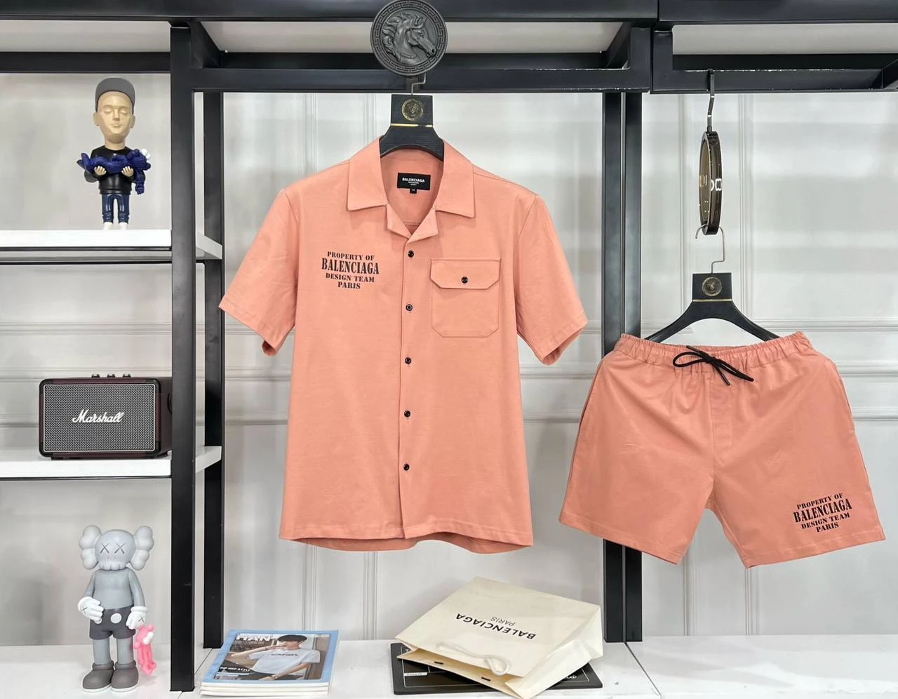 Mens Balenciaga Cargo Peach Coord Set