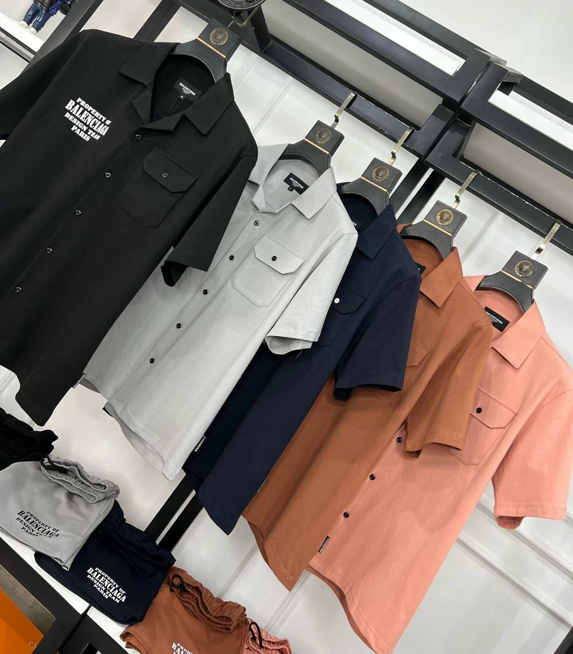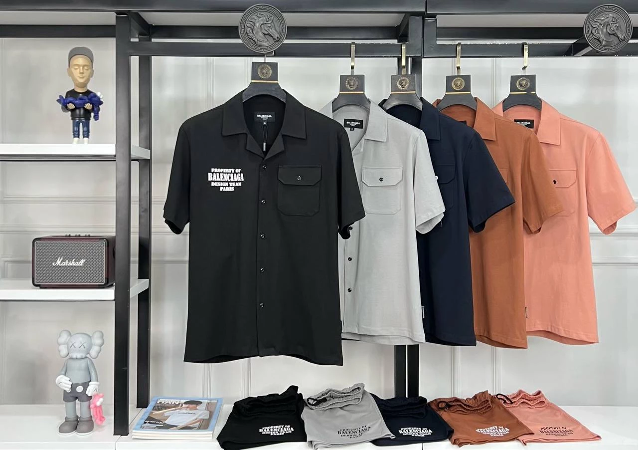 WITH FRONT OPENING BUTTONS HALF SLEEVES SHIRT WITH CARGO POCKET + BALENCIAGA PRINT & WITH SAME FABRIC SHORTS