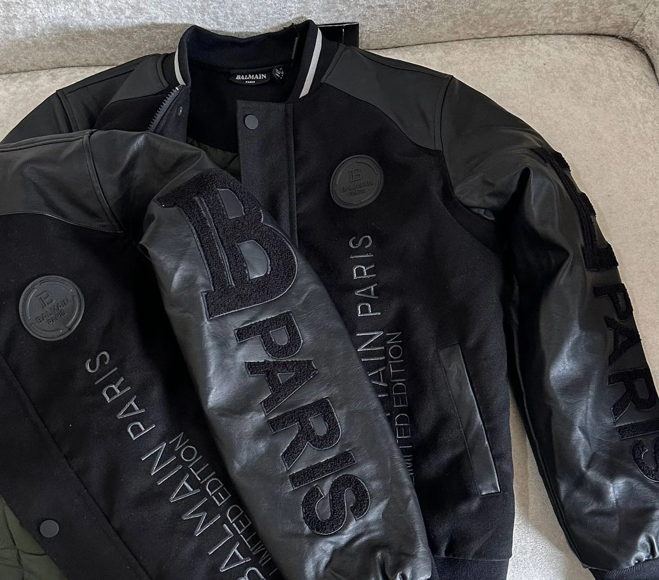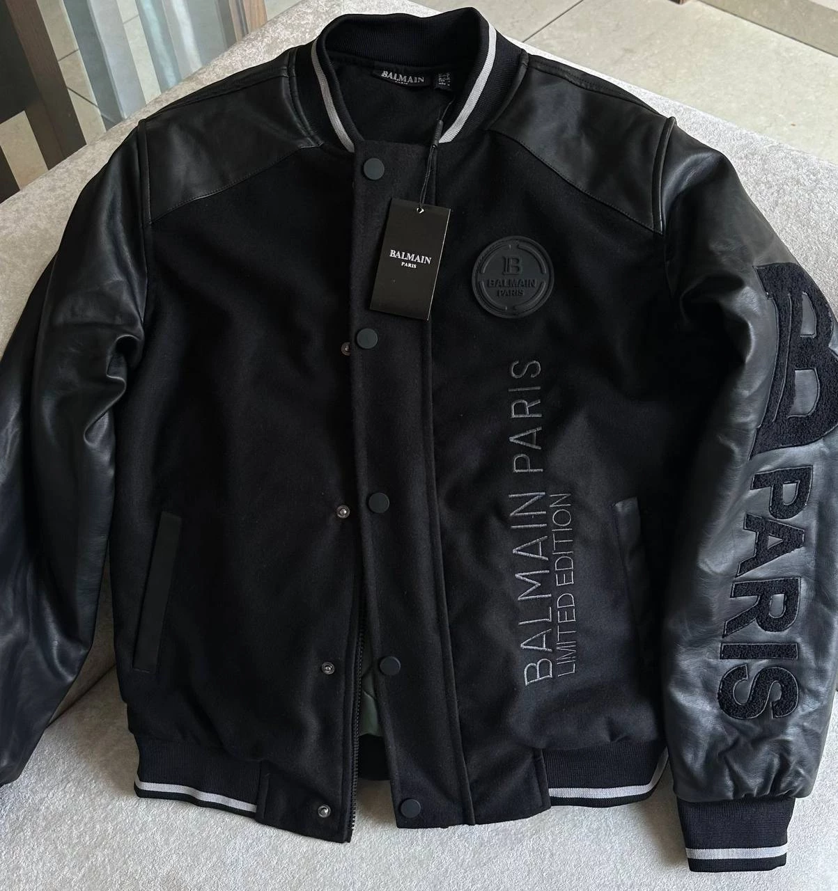 “Elevate your style with the Men’s Balmain Premium Black Varsity Jacket. Crafted from luxurious, high-quality materials, this jacket combines the iconic varsity design with Balmain’s signature elegance. The sleek black finish offers a timeless and versatile look, perfect for casual outings or evening events.