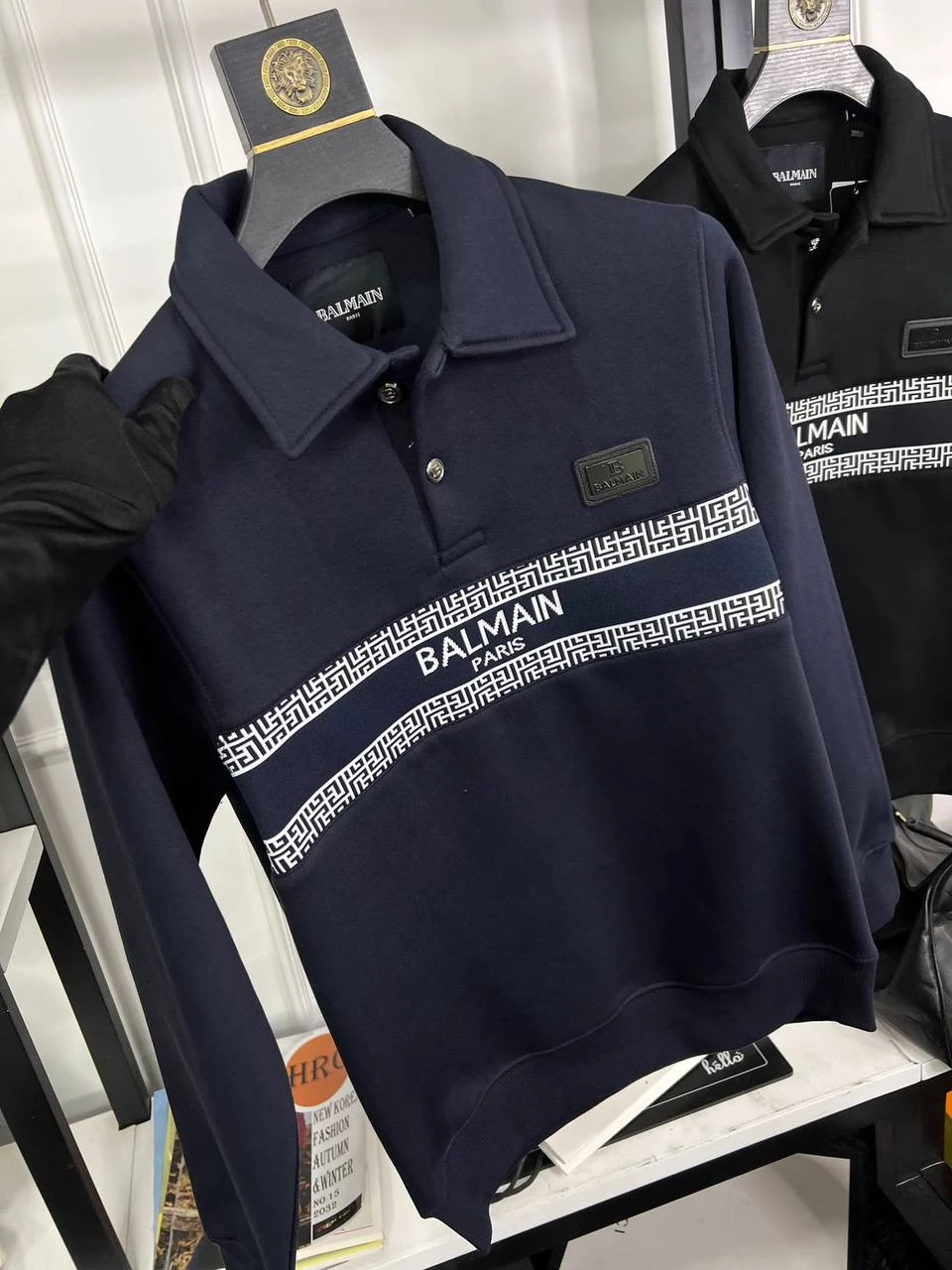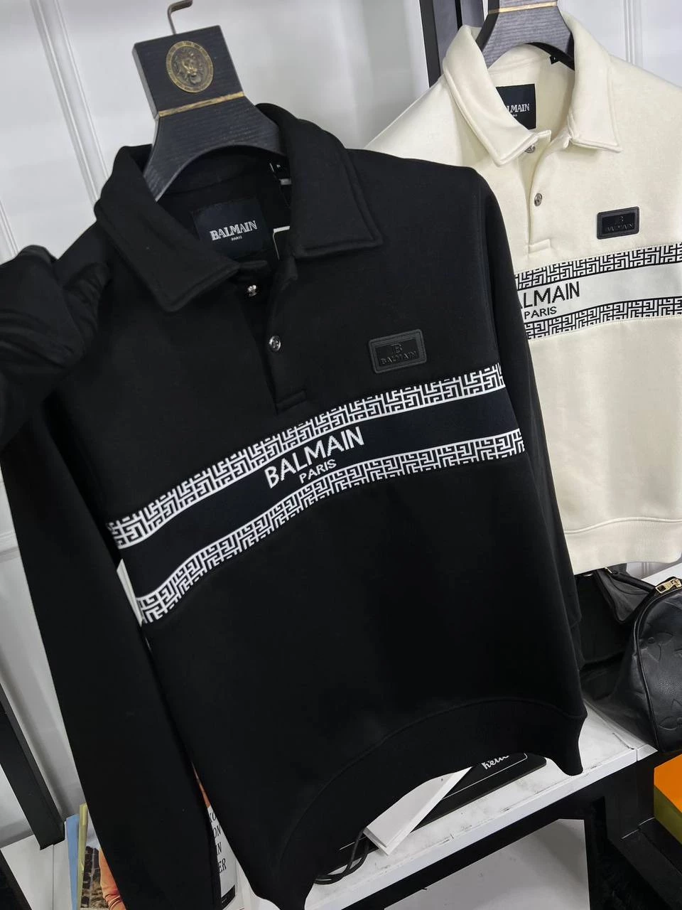 Balmain knitted fabric in center + Imported Pu metal Id on front as store article