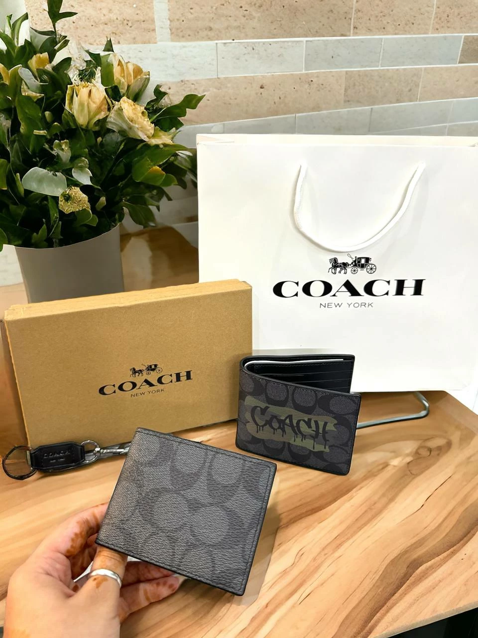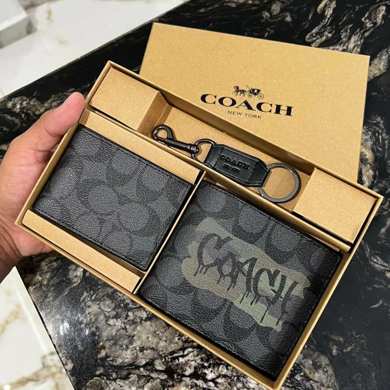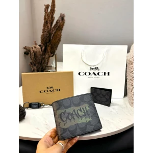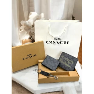 Men’s Coach Black Wallet, Cardholder & Keychain Luxury Gift Set