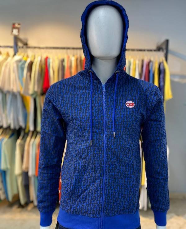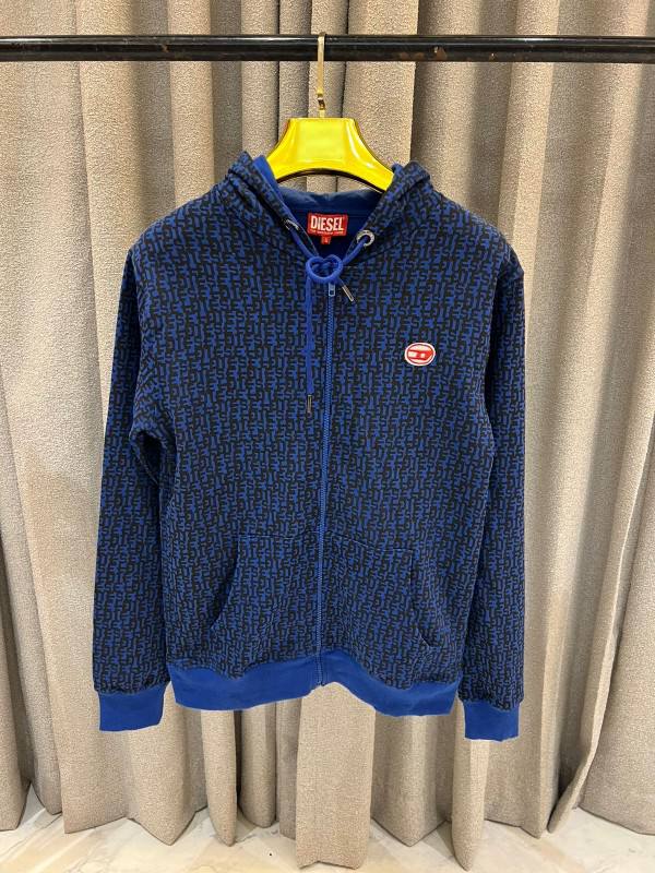 Men’s Diesel D Um Rib Track Denim Blue D Logo Hoodie
