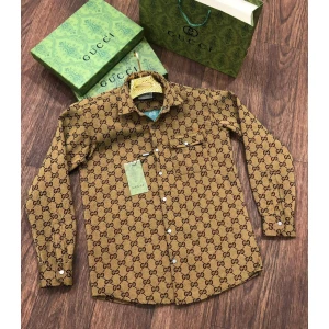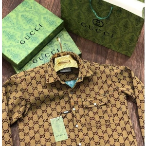Men’s Gucci All-Over GG Embossed Tich Button Jacquard Shirt