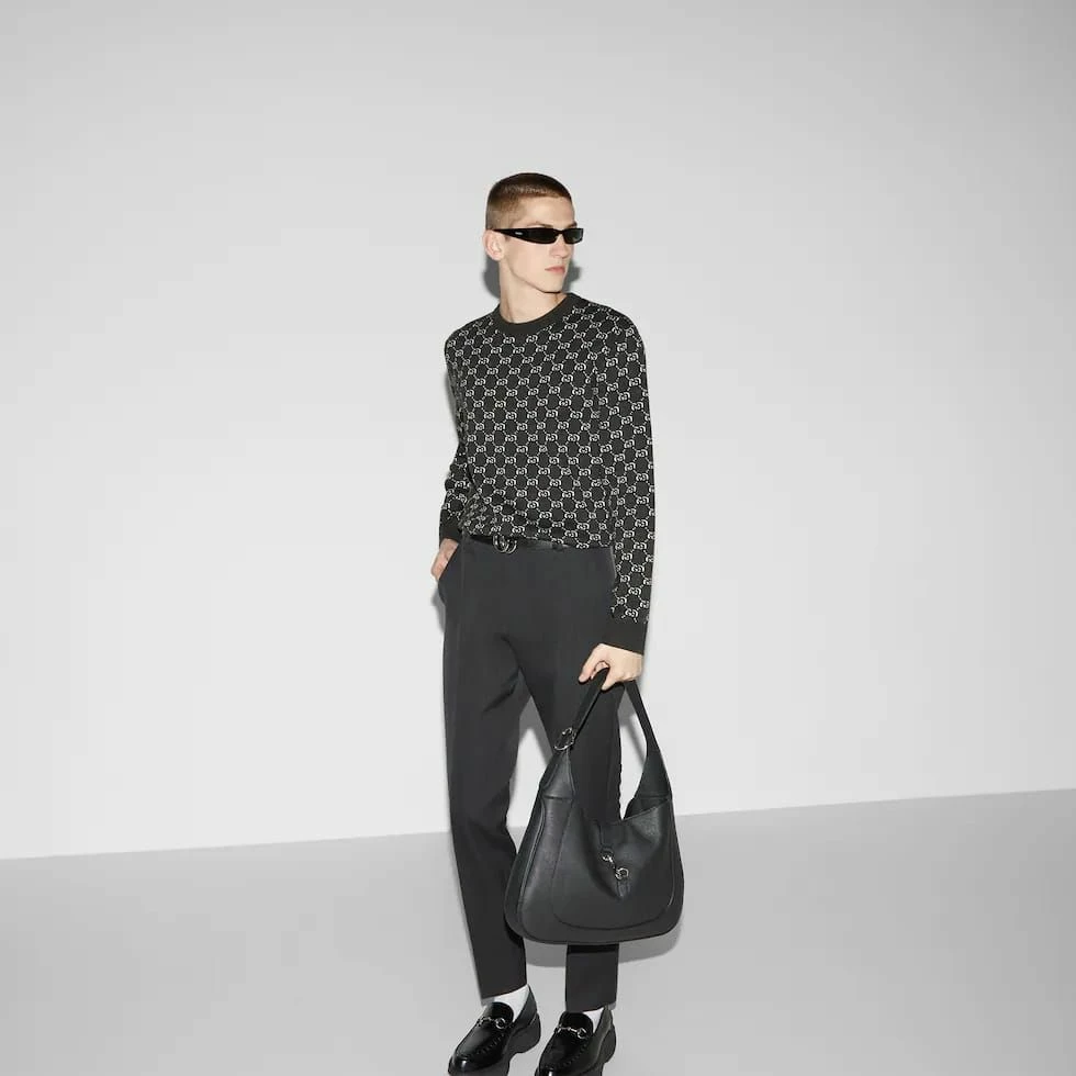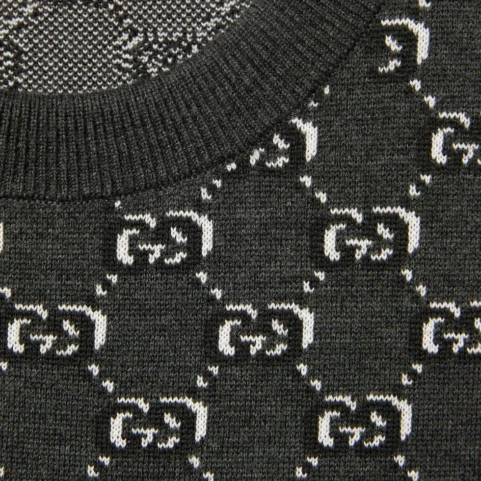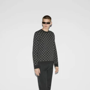 Part of the men’s Fall Winter 2024 collection, everyday ready-to-wear pieces are elevated thanks to high quality materials and impeccable craftsmanship. This sweater appears in dark grey and black GG knit wool jacquard recalling the House heritage.