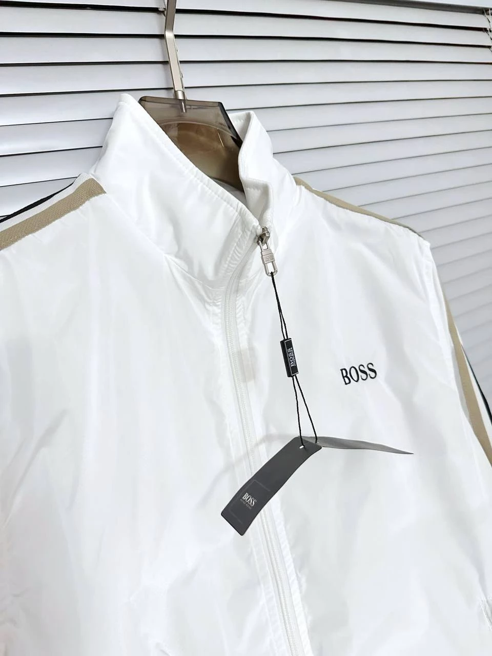 “Stay sharp with the Men’s Hugo Boss Imported White Zipper Jacket. Designed with a sleek and modern silhouette, this jacket is crafted from premium materials to provide both comfort and durability. The classic white color adds versatility, making it a stylish choice for any occasion, while the high-quality zipper closure ensures a secure fit.