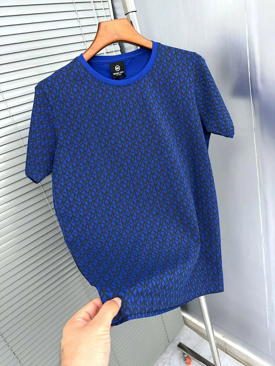 Men’s Michael Kors All Over Mk Monogram Printed Blue Round Neck Tshirt