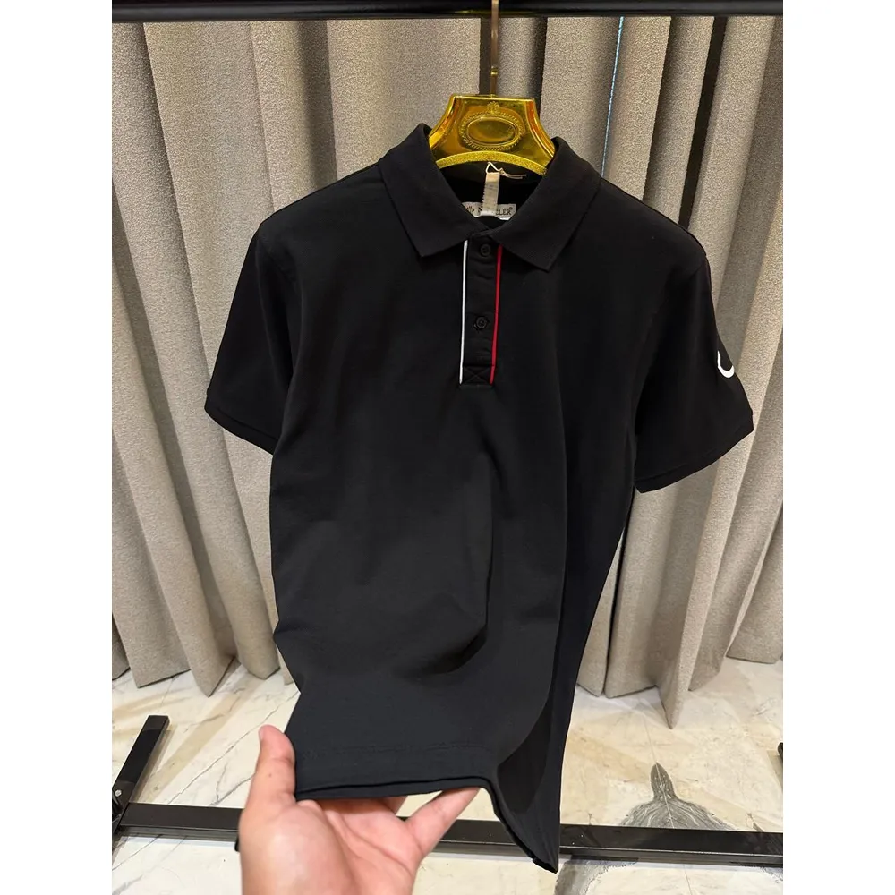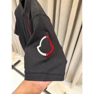 Men’s Moncler Embroidery Logo On Sleeve Black Polo Tshirt