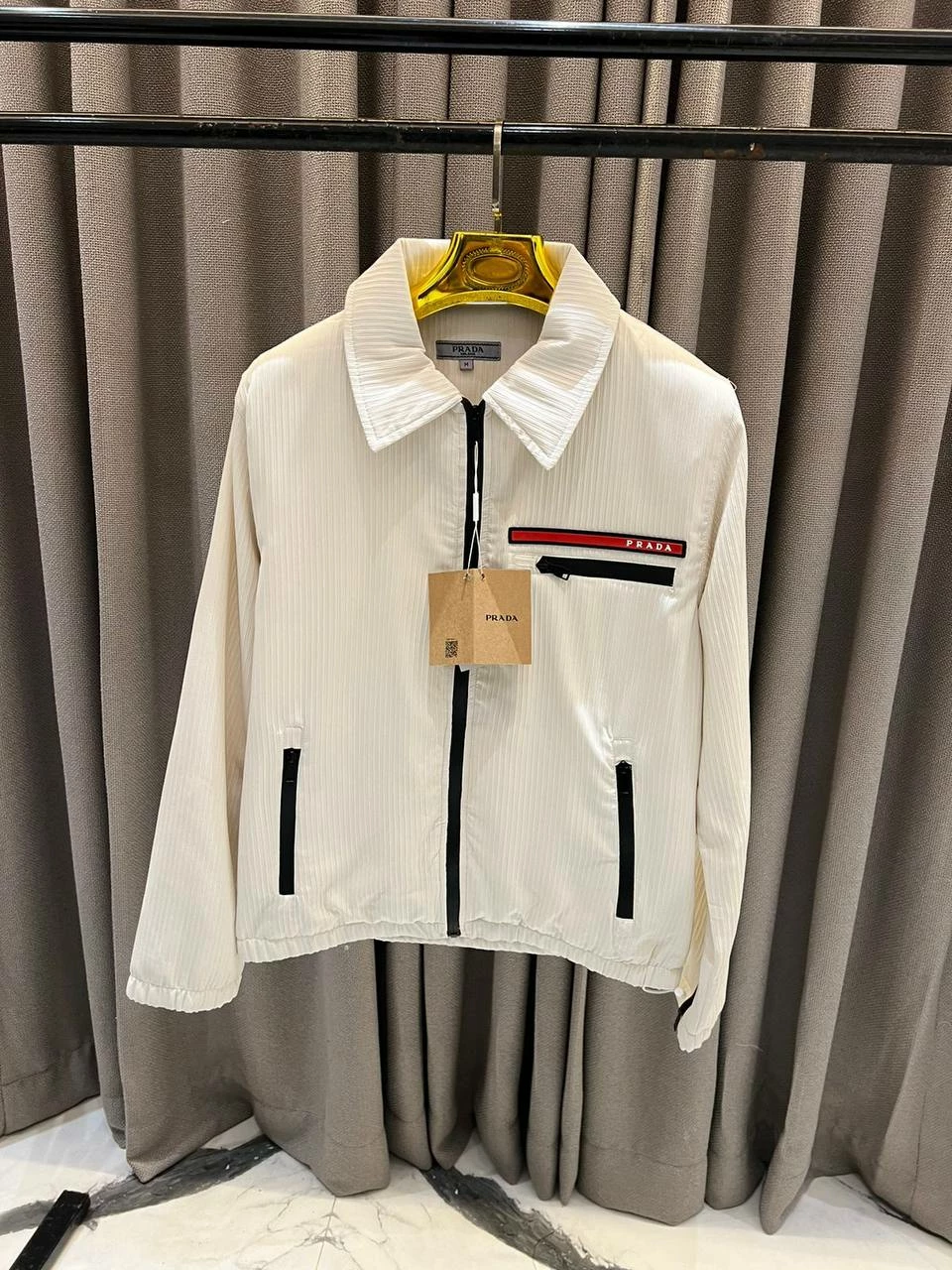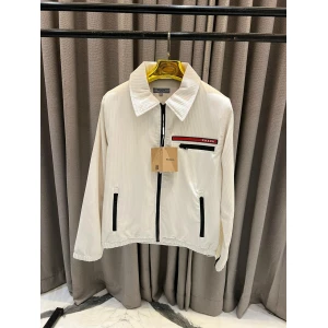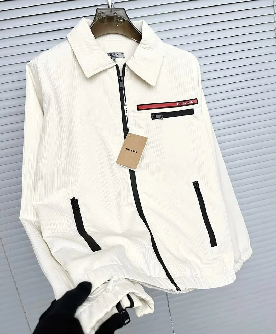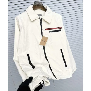 Elevate your outerwear collection with the Men’s Signature Prada White Bomber Jacket, a perfect blend of luxury and contemporary design. This jacket showcases Prada’s impeccable craftsmanship and clean, modern aesthetic.