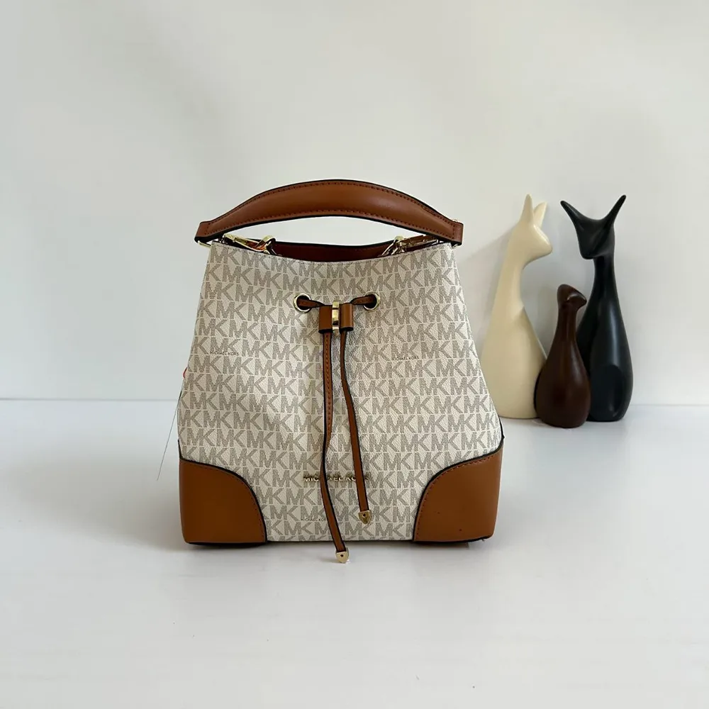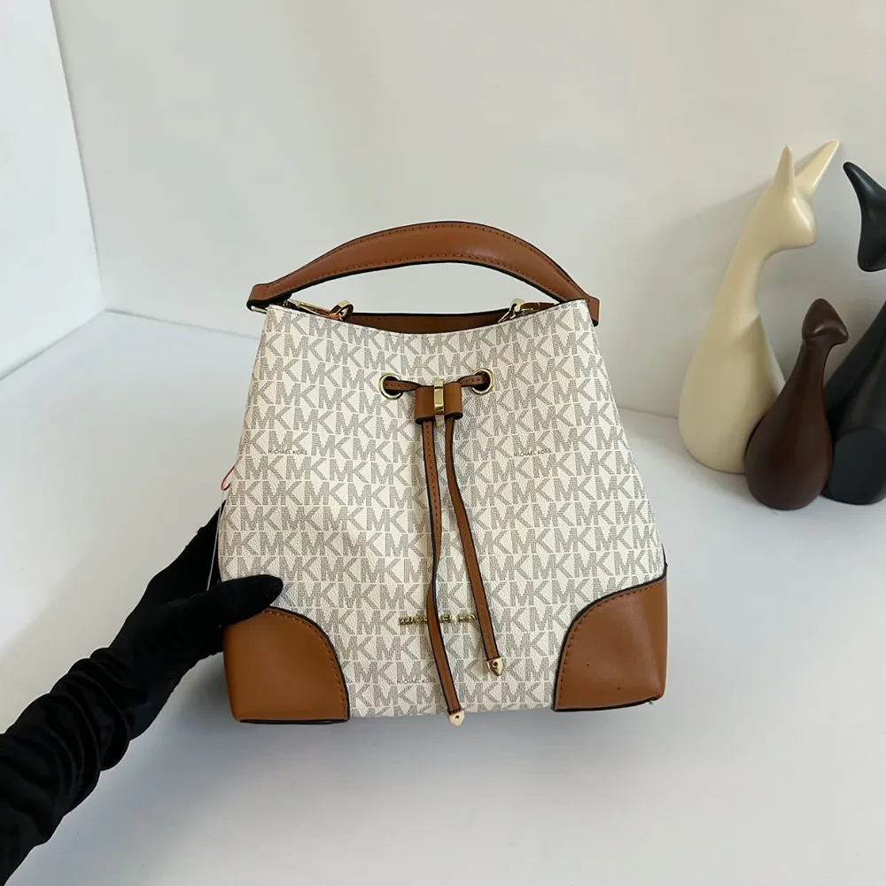 Michael Kors Mercer White Bucket Bag In All Over Signature Mk Monogram With Pouch