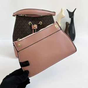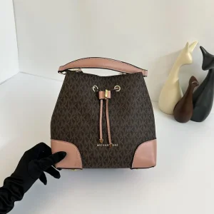 Michael Kors Mercer Brown Bucket Bag In All Over Signature Mk Monogram With Pouch