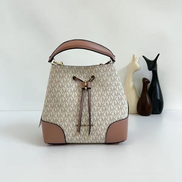 Michael Kors Mercer Brown Bucket Bag In All Over Signature Mk Monogram With Pouch