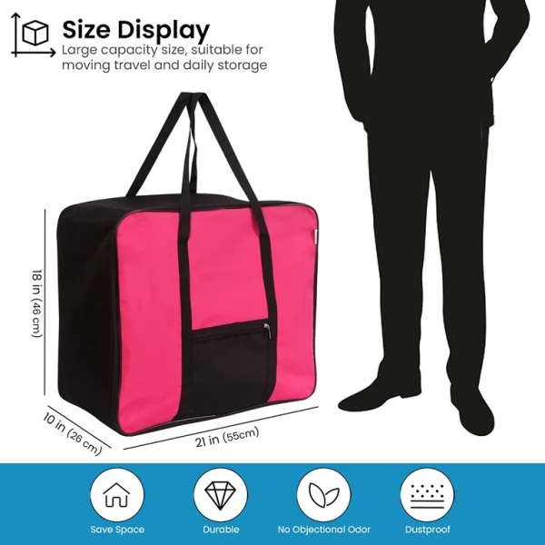 Organize your belongings effortlessly with this Oxford Fabric Big Underbed Moisture Proof Storage Bag. This bag, in a delightful pink color, is designed to keep your items safe and discreetly stored under your bed. It includes one storage bag with the following dimensions: Length – 18 inches, Breadth – 10 inches, Height – 21 inches. The bag weighs 500 grams.