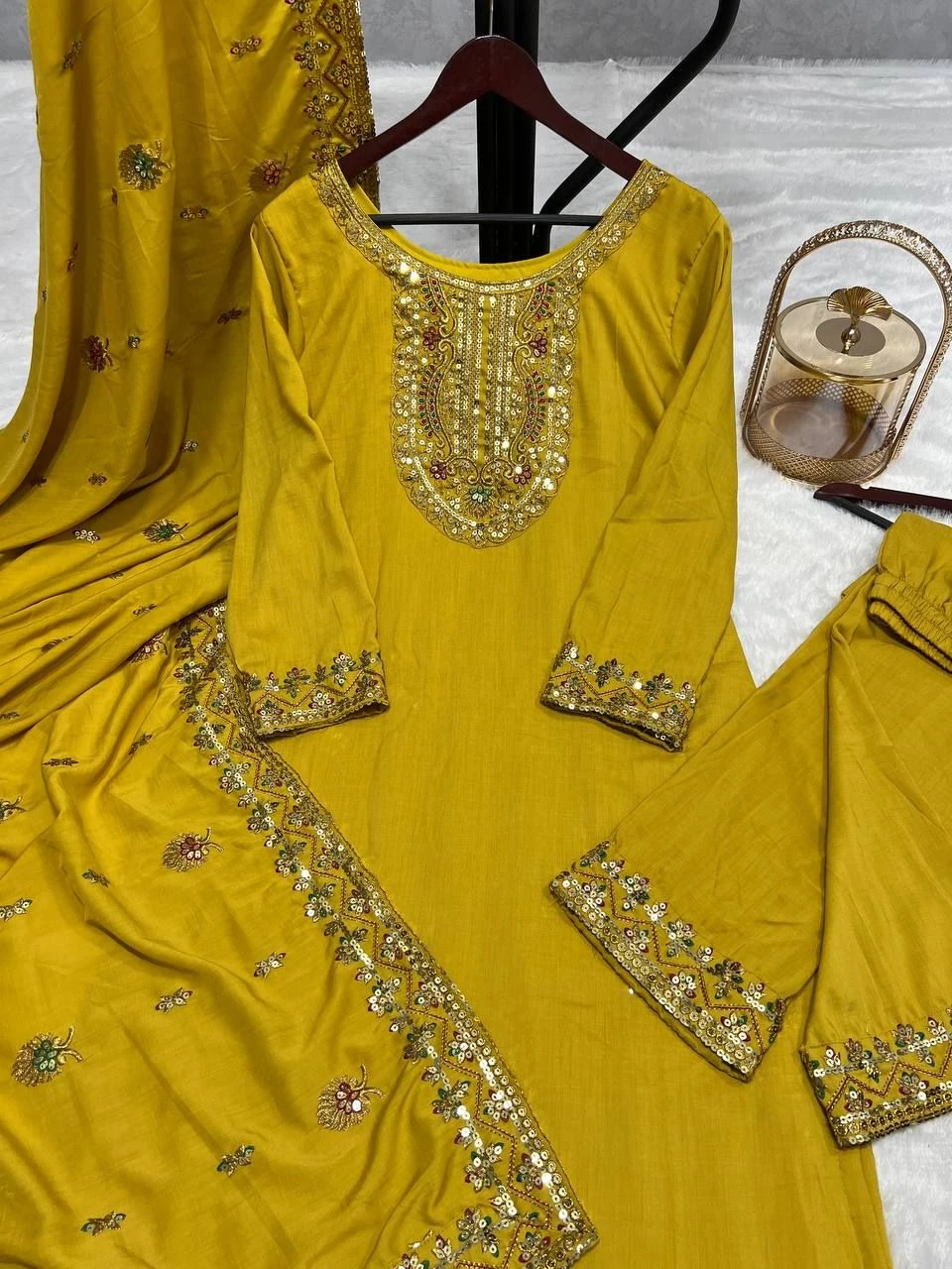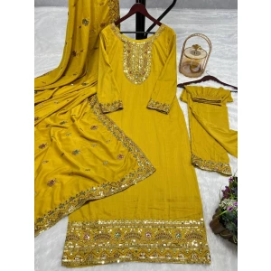 Ready to wear Chinnon Heavy Embroidery Sequenced Top-Bottom And Dupatta Set