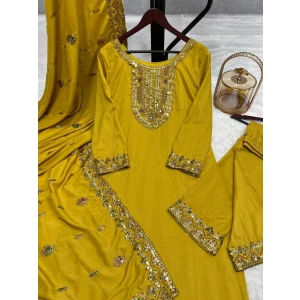 Ready made Pure Chinnon Silk And Heavy Embroidery Sequence Top-Bottom And Dupatta Set