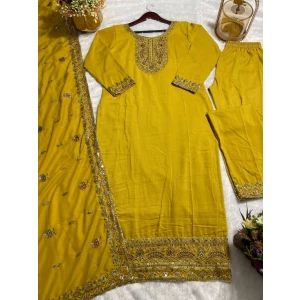 women’s latest Heavy Chinon Silk Top-Bottom And Dupatta Set
