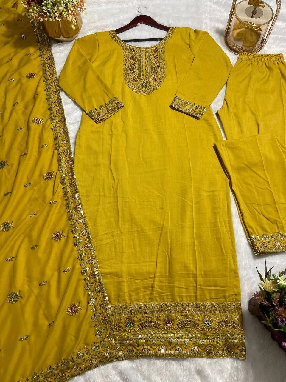 Pure Chinnon Silk And Heavy Embroidery Sequence Work Top-Bottom And Dupatta Set