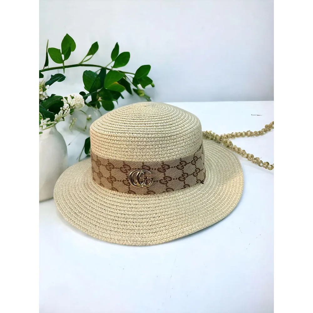 Unisex Gucci Gg Logo Straw Bucket Hat