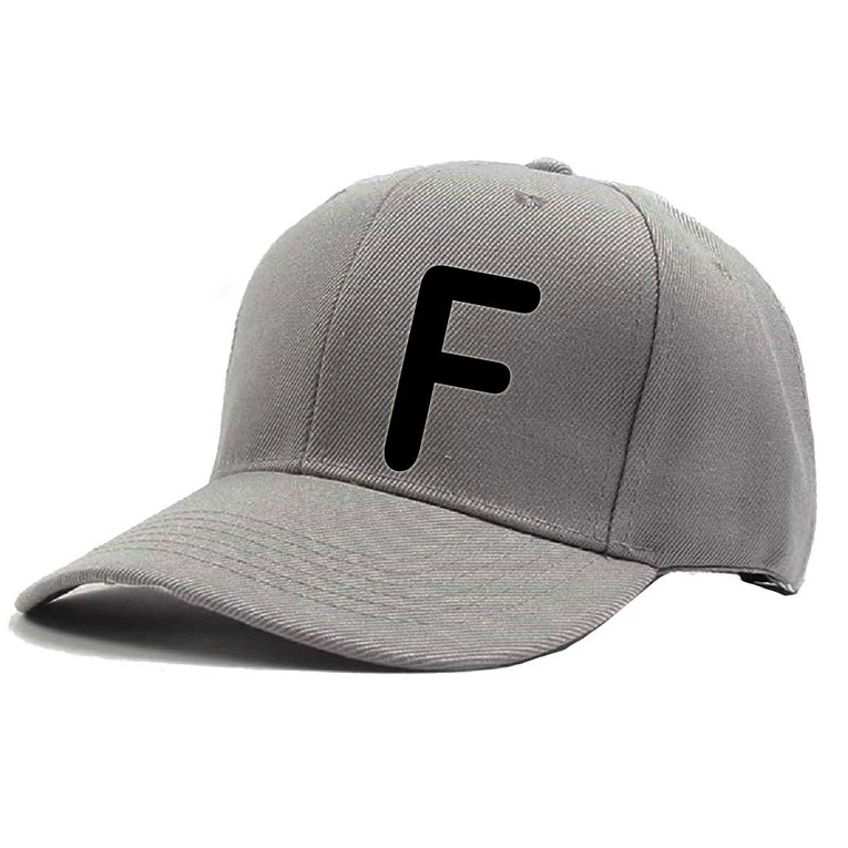 Unisex Plain F Printed Cotton Cap – Grey (KK-2217266)