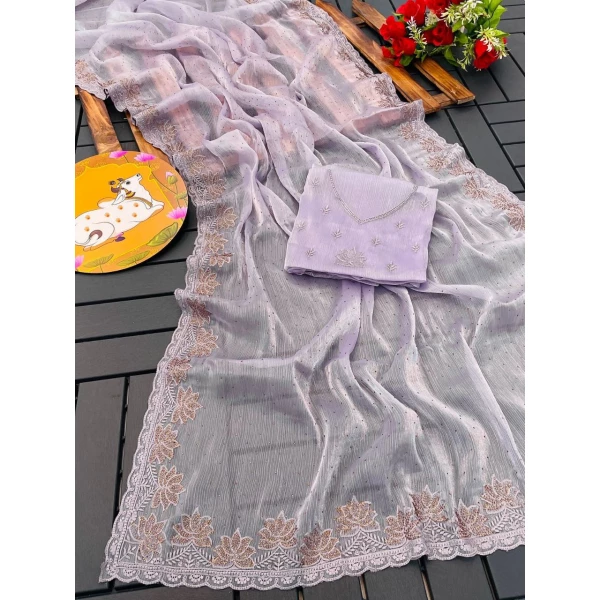 Women's Trending Embroidery Work Ready to Wear Saree With Koti