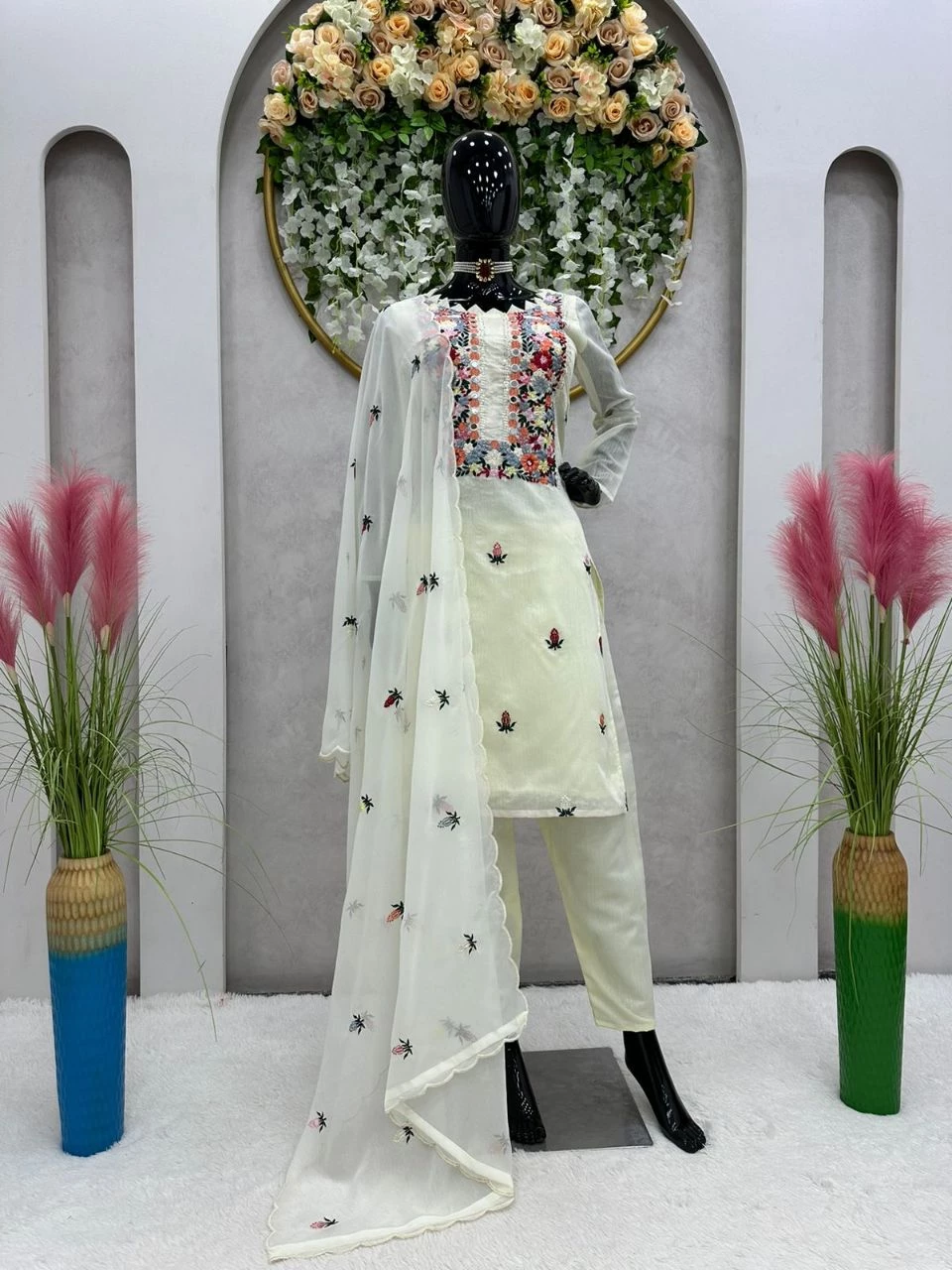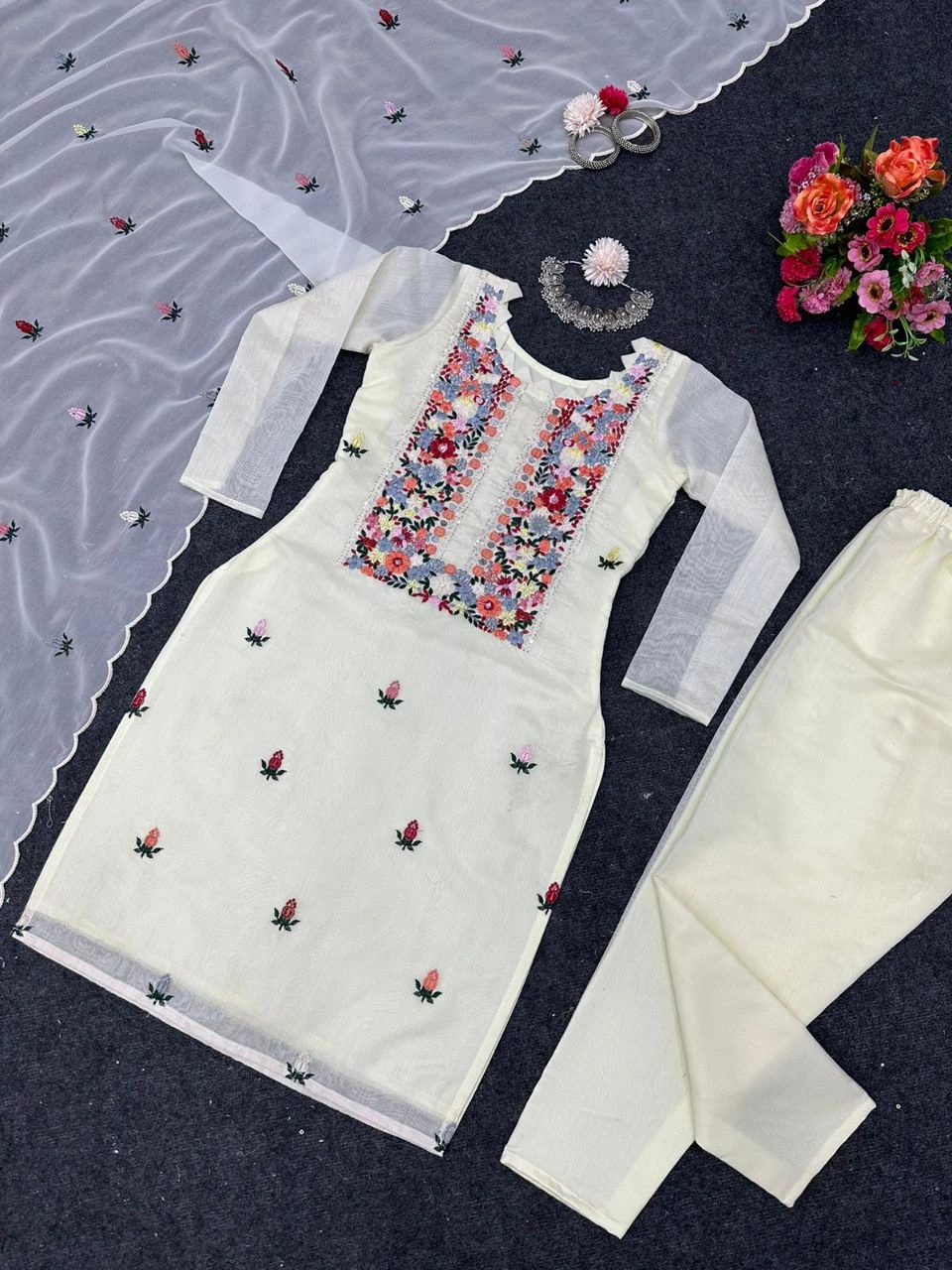 Women’s Beautiful Chanderi Kurta, Pant and Dupatta Set