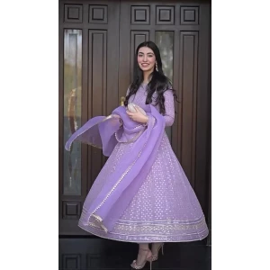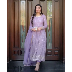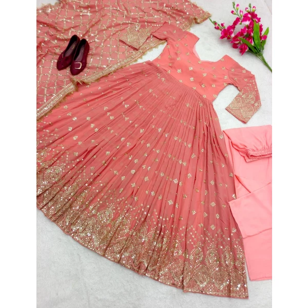 Gown Fabric : Heavy Faux Georgette And Sleeve With Heavy Work