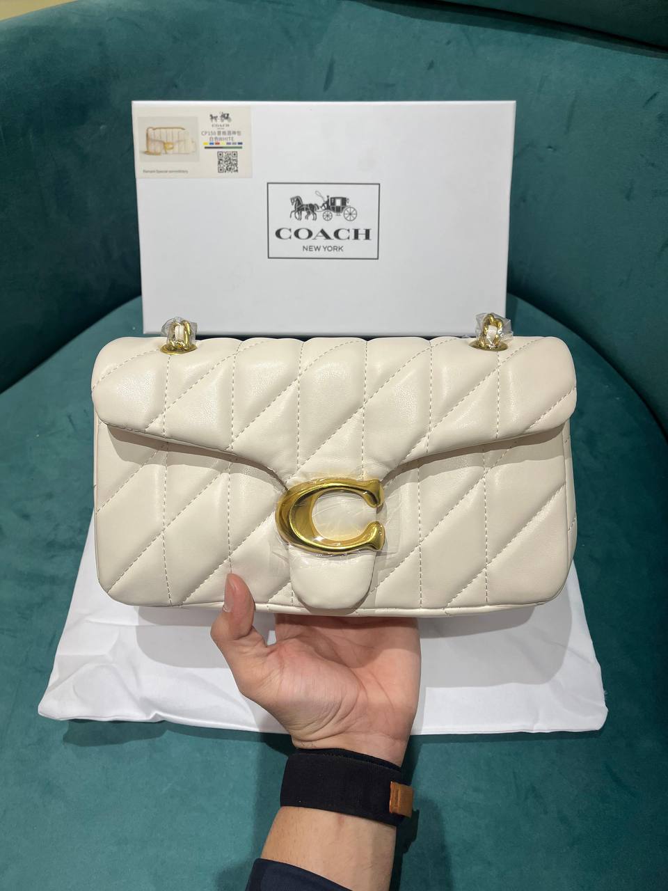 Women’s Coach Tabby 26 Soft Quilted White Shoulder Bag