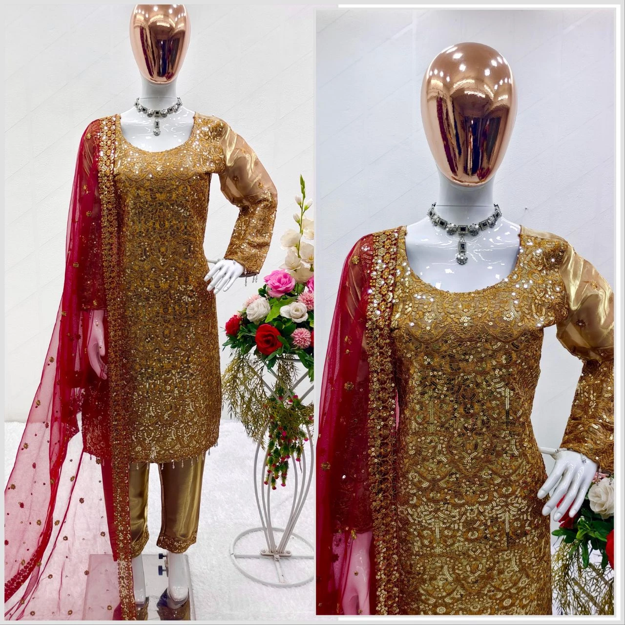 - Dupatta Fabric: Heavy Soft Net With 5mm Siqwans Embroidery Work With Full-Stitch