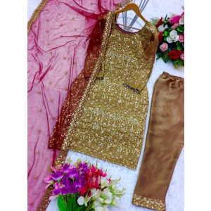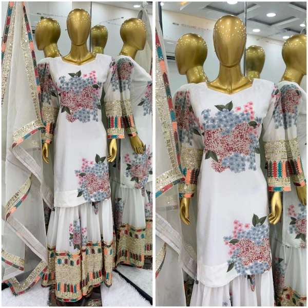 - Top Fabric : Pure Jimmy Chu Silk With 5mm Siqwans Embroidery Work With Sleeves With Fency Moti Less work