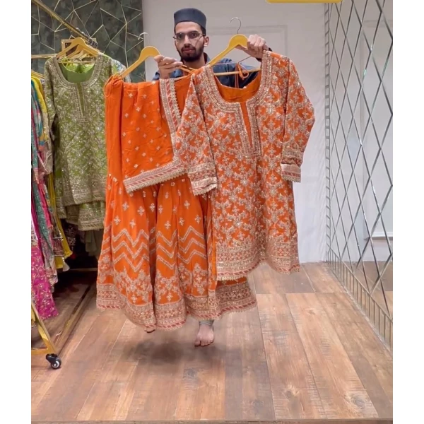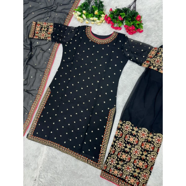 Women’s Heavy Embroidery Top And Plazzo With Fancy Dupatta