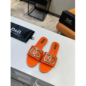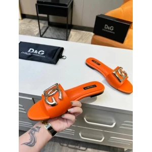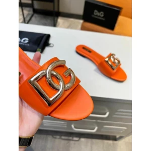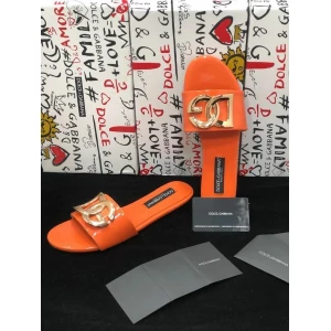 Women’s Dolce and Gabbana D&G Logo Orange Flats | Luxury Slides