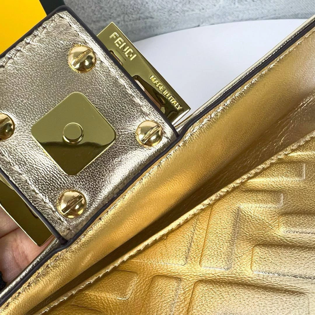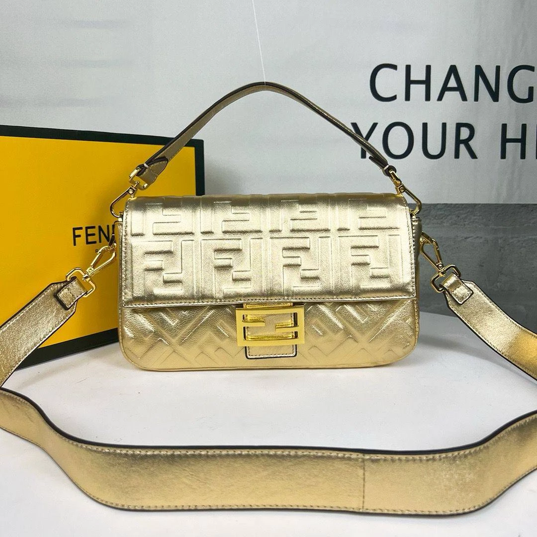 Women’s Fendi All Over FF Monogram Baguette Golden Mini Handbag with Sling