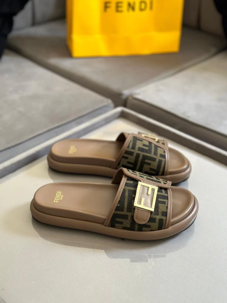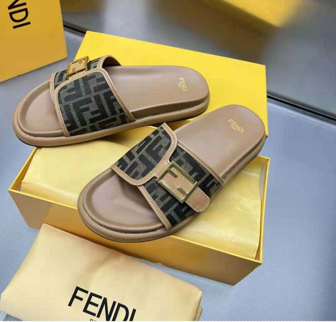 Discover the epitome of luxury with our Fendi Slides, now available in limited stock. Designed for discerning ladies, these slides are crafted from premium quality materials, ensuring both comfort and style.