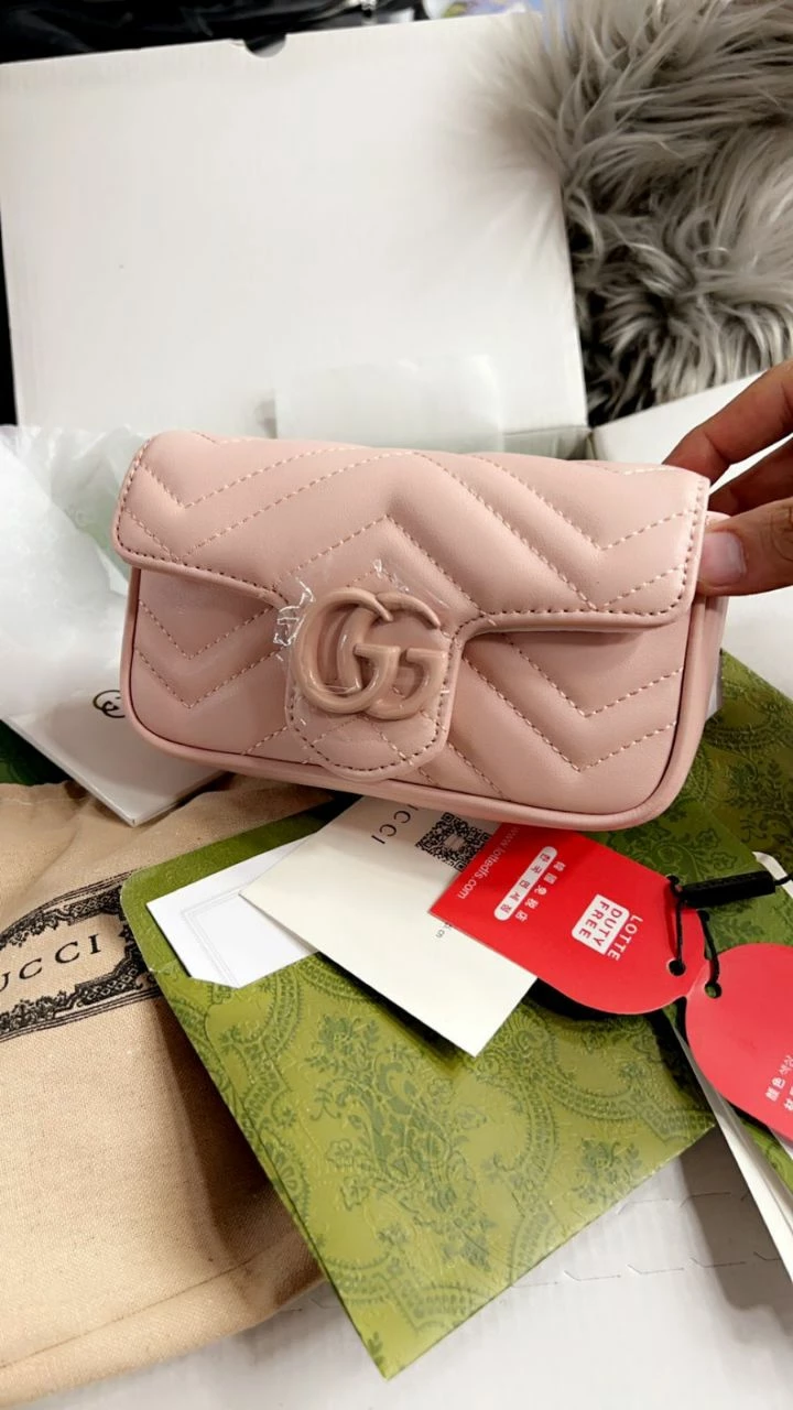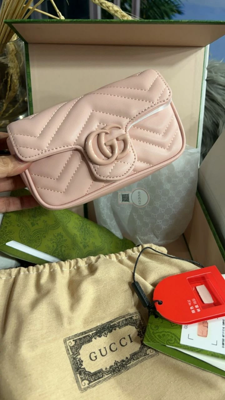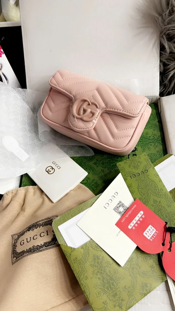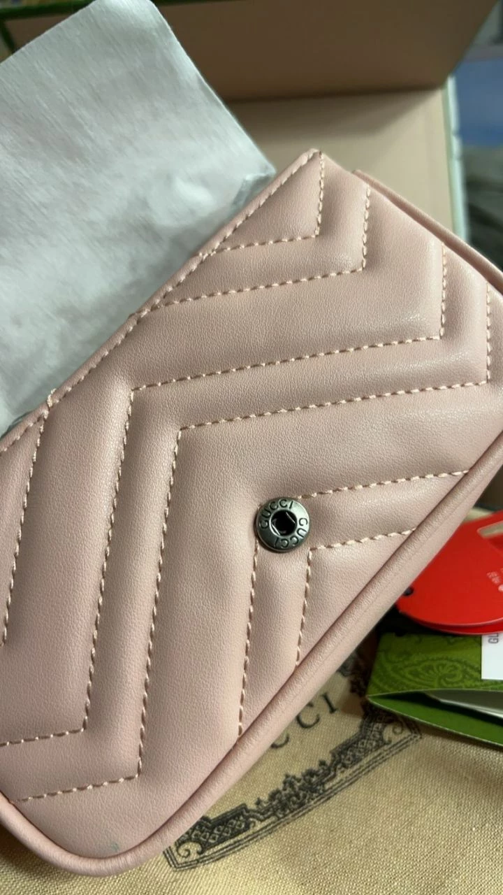 The Gucci GG Marmont Mini Bag in Pink is a perfect blend of elegance and modern style. Crafted from genuine leather, this mini bag features the iconic GG logo on the front, adding a signature touch of sophistication. Its compact size (16.5 cm) is perfect for carrying your essentials with ease, making it an ideal accessory for both day and night outings