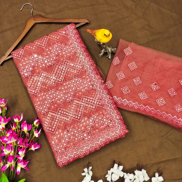 Women’s Pure Chinnon Silk And Heavy Embroidery Cording Sequence Work Top-Bottom And Dupatta Set