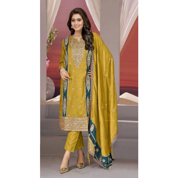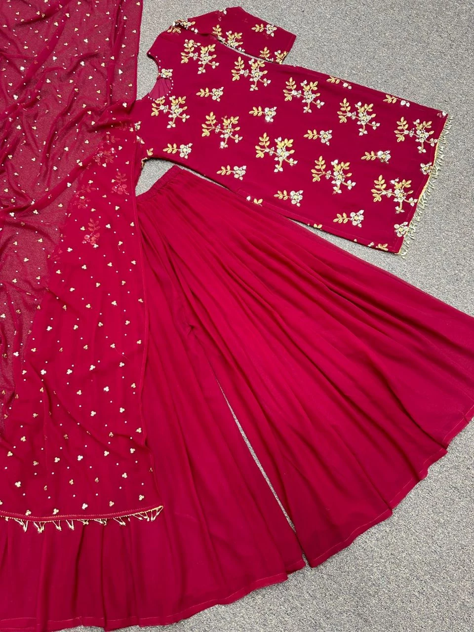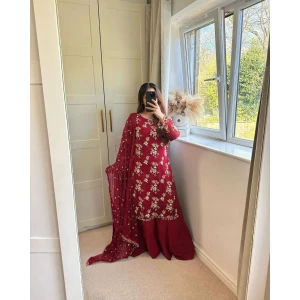 - WORK :- Fancy Heavy Embroidery Work with riveted Moti work and latkan lace border