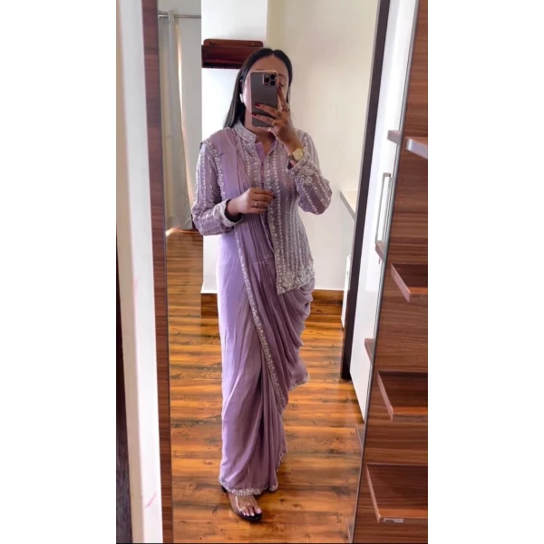 - WORK :- fancy embroidery work with riveted Moti work and pallu side latkan lace border