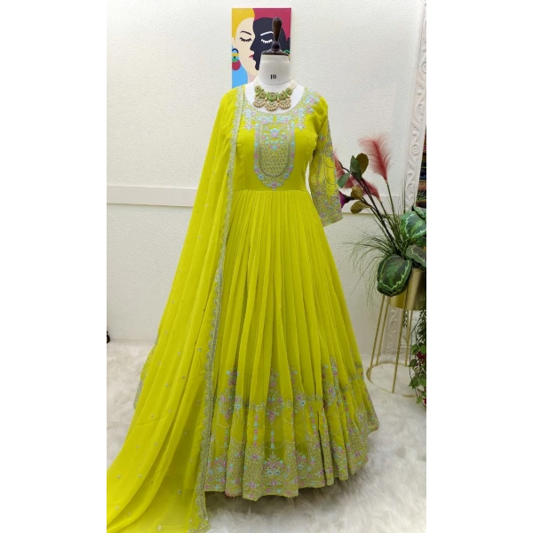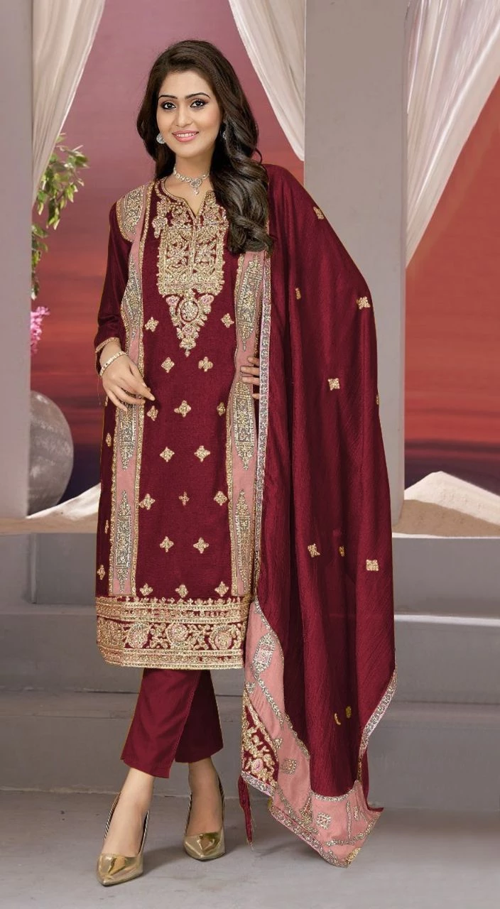 - Pent Length: 40-41 Inc (Fully Stitched)Dupatta Fabric: Fox Georgette With 5mm Embroidery Work With Full-Stitch (2.15-2.20)