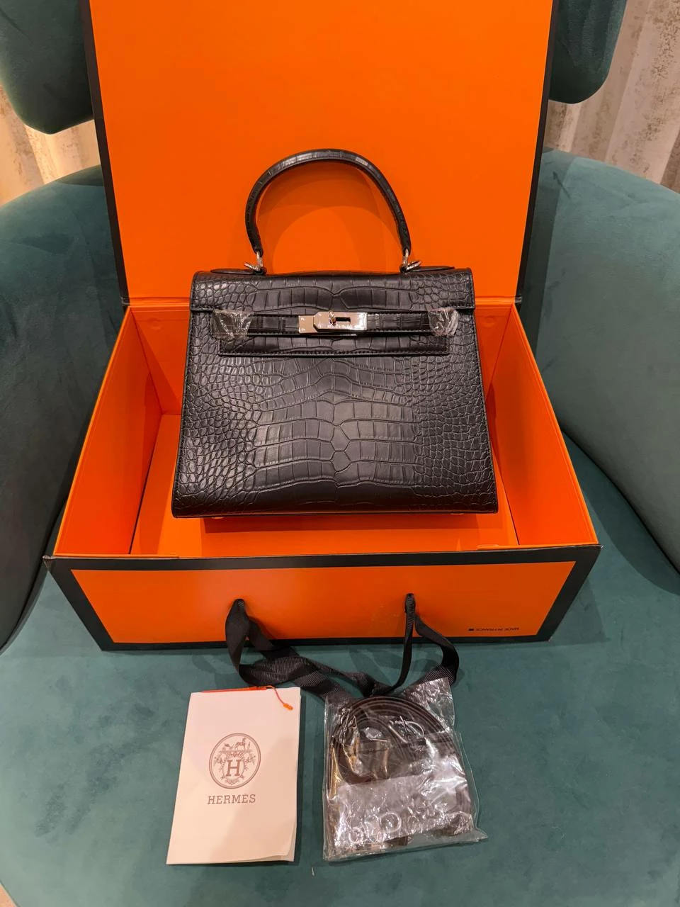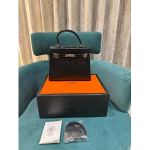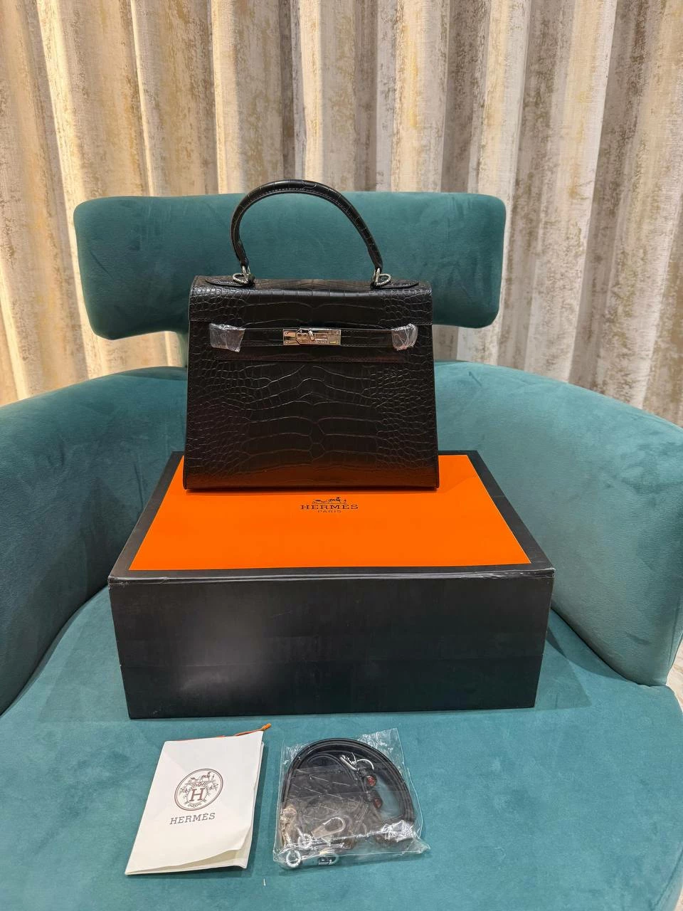 Women’s Hermes Birkin 30 Croc Leather Black Top Handle Bag with Strap