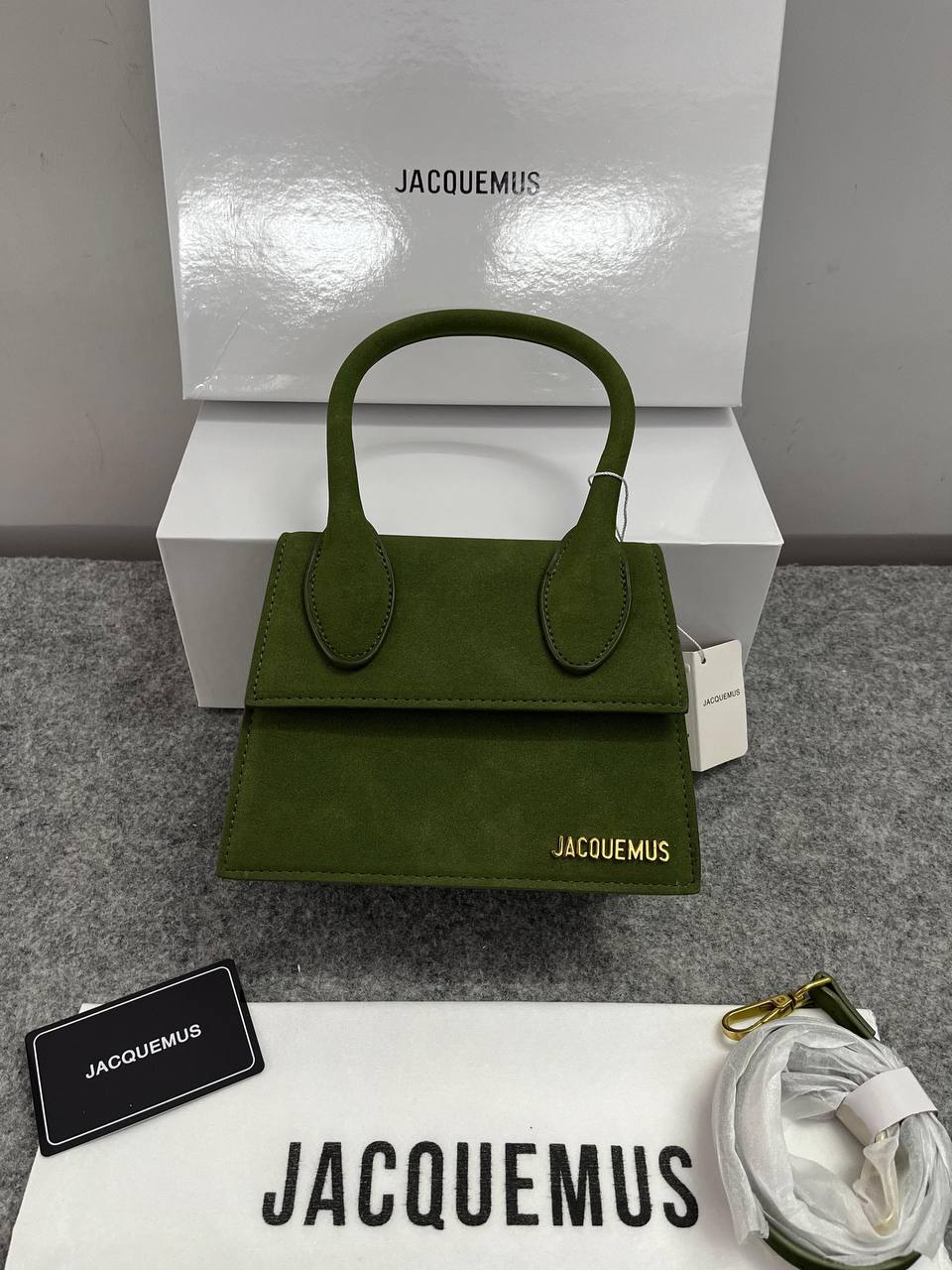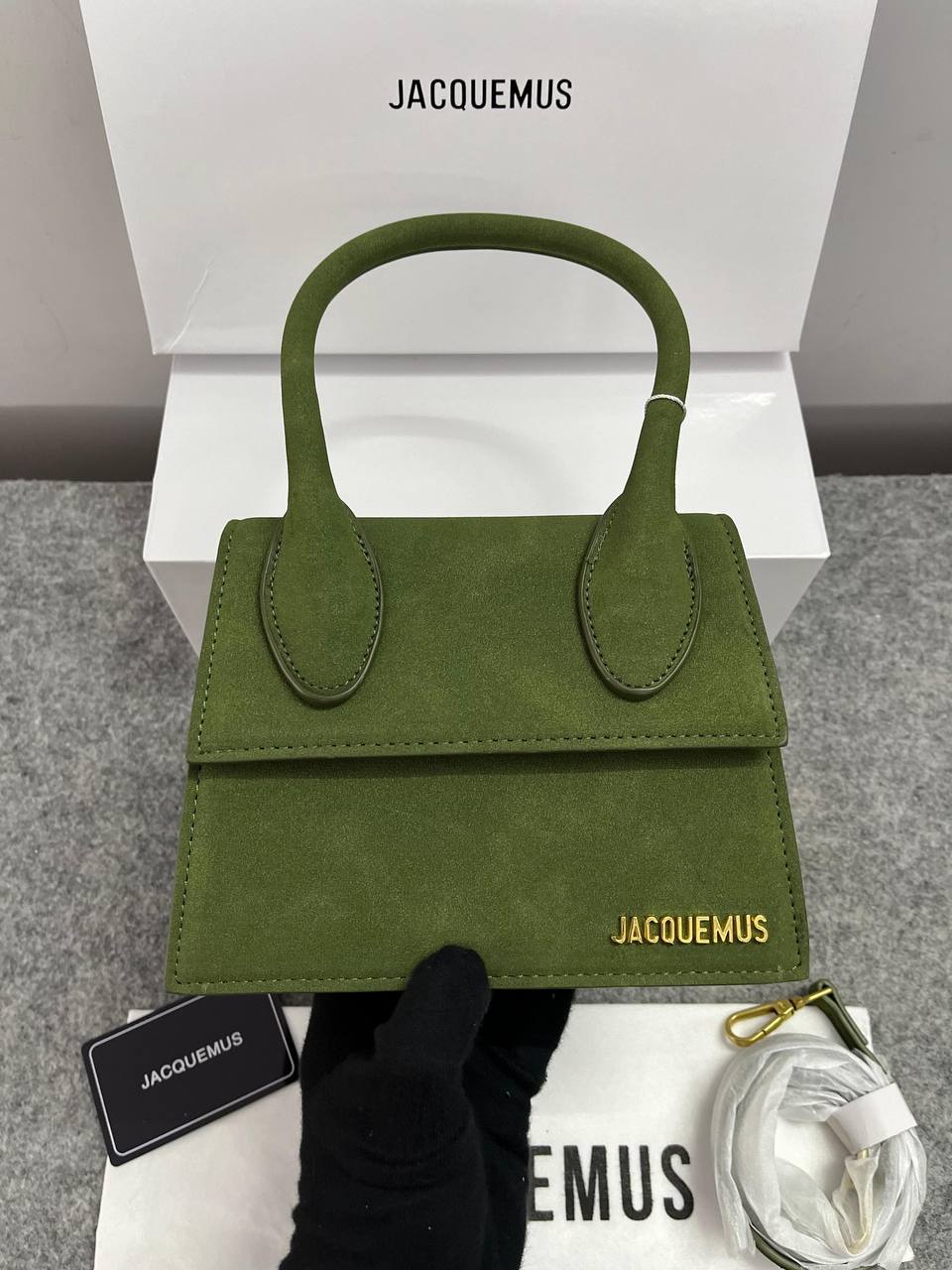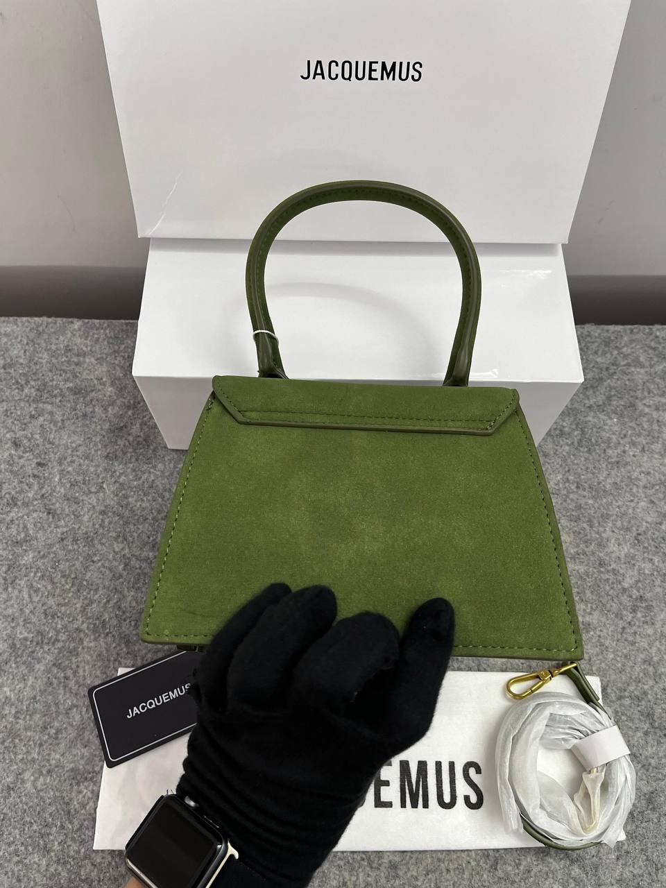 Women’s Jacquemus Le Chiquito Moyen Green Suede Top Handle Bag With Sling Strap