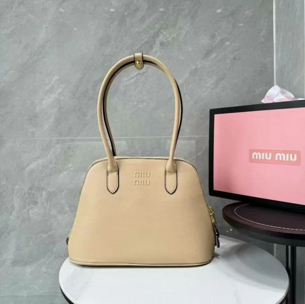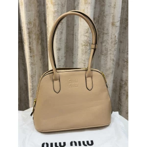 Women’s Miu Miu Embossed-Logo Medium Beige Tote Bag